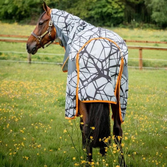 - Einzigartiges Fliegenabwehr-Druckdesign. Tarnt das Pferd vor lästigen Käfern und Fliegen.
