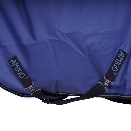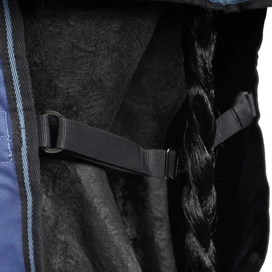 Dies ist eine starke und haltbare 900D-Decke mit einer Polyester-Außenseite und einem glänzenden Polyester-Futter. Die 50-Gramm-Polyfill-Isolierung hält Ihr Pferd an kühleren Tagen warm. Die Decken haben auch vordere Beinbögen, eine Heckklappe, zwei Kreuzschienen und ein Schwanzband.
