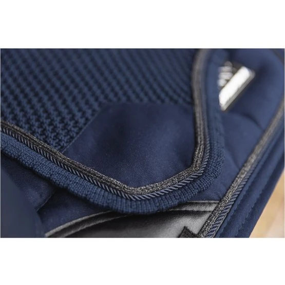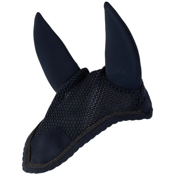 Der Körper besteht aus gehäkelter Baumwolle für optimale Belüftung und in der Spitze befindet sich eine elegante Wildlederverarbeitung mit dem dezenten, dünn gezeichneten Blattmuster. Durch den glänzenden, gunmetalfarbenen Besatz und die Kordelpaspelierung in der Farbe des Ohrennetzes erhält das Ohrennetz ein luxuriöses Aussehen.