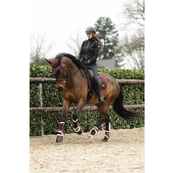 Das ANKY® Ohrennetz Leafs schützt die Ohren Ihres Pferdes vor Fliegen und anderen Insekten. Die Ohren bestehen aus schallabsorbierendem Neopren. Dies sorgt dafür, dass Ihr Pferd weniger erschreckt und konzentrierter bleibt. Das Wildleder auf der Vorderseite ist mit dem gleichen dezenten, dünn gezeichneten Blattmuster bedruckt wie die passenden Polster.