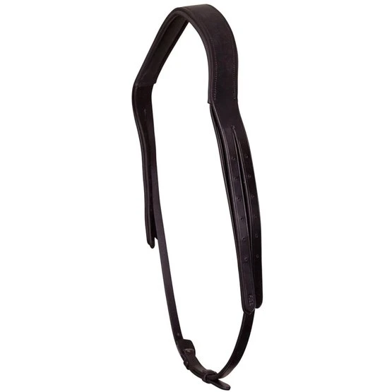 Anatomisch geformtes Genickstück für einen Kandarenzaum, der wegen seines halbmondförmigen Schnittes die Ohren nicht einklemmt. Das Genickstück ist weich gepolstert.