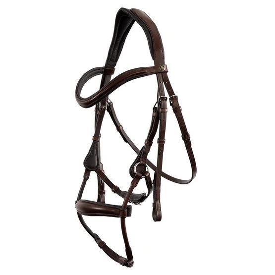 Das anatomische Genickstück Anatomic Free hat eine spezielle Form, die dafür sorgt, das der Druck auf einem wichtigen Nerv auf dem Kopf des Pferdes reduziert wird. Außerdem ist das Genickstück mit einem sanften Futter ausgerüstet. Der Nasenriemen und der Sperriemen bilden eine Einheit und sind teils rundgenäht. Der rund bombierte Nasenriemen ist in Höhe verstellbar und kann ganz einfach nach oben und nach unten bewegt werden für den perfekten Passform. Das Kinnband enthält einen Kinnschutz und es gibt eine zusätzliche Schutzlasche für die Schnalle des Sperrriemens.