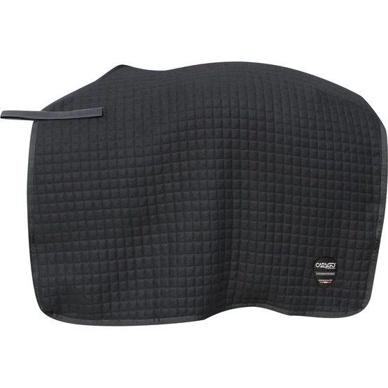 Hochwertiges Übungslaken aus gestepptem Cooler-Stoff. Die CATAGO-Ausreitdecke ist äußerst funktionell, da der Stoff den Rücken des Pferdes warm hält, gleichzeitig atmungsaktiv ist und Feuchtigkeit und überschüssige Wärme ableitet. Die Trainingsdecke verfügt über Klettverschlüsse zur Befestigung am Sattel und einen Schweifriemen, um die korrekte Position der Decke während des Reitens beizubehalten.
