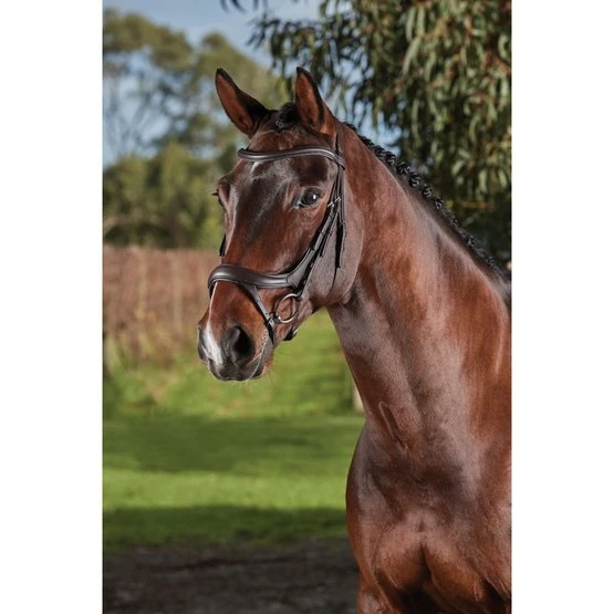 Das anatomische Genickstück verfügt über eine superweiche Polsterung und ist zwischen den Ohren des Pferdes breiter geformt, um den Druck gleichmäßig und bequem zu verteilen.