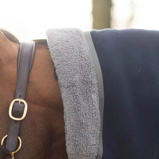 Die Fleecedecke in Kombination mit diesem Halsband eignet sich perfekt als Abschwitzdecke, kann aber auch als Transportdecke für den Anhänger oder im LKW verwendet werden.