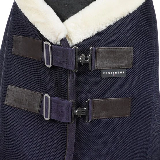 Die Decke hat ein mit Nylon gefüttertes Bruststück, das mit einem doppelten männlichen/weiblichen Verschluss und Klettverschluss schließt.