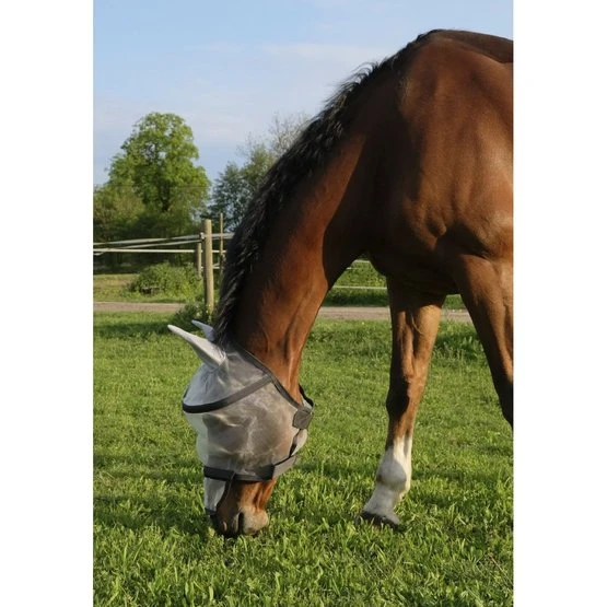 100 % PVC-Fliegenmaske, die mit einer einzigartigen Verstärkung ein Scheuern um die Augen verhindert.
