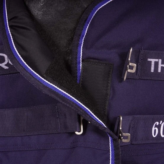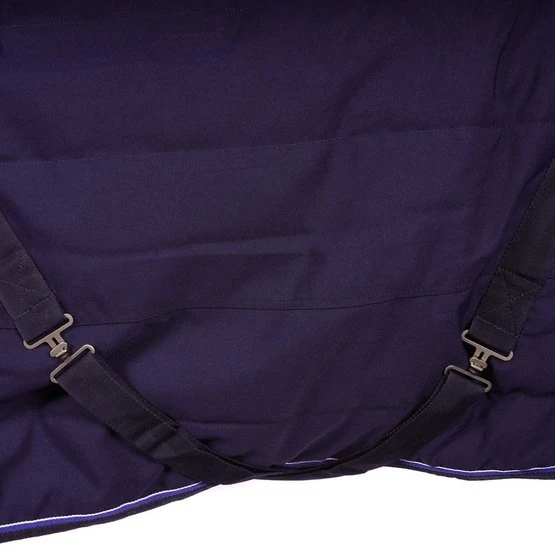 Stabiler Oxford-Polyesterteppich mit 1000 Denier und Polyesterfutter. Ausgestattet mit einem großen Schulterpolster aus synthetischem Lammfell, niedrigen Kreuzlocken und einem Schweifriemen. Schneller Brustverschluss mit Druckknopf, verstärkt mit Selbstklebebändern.