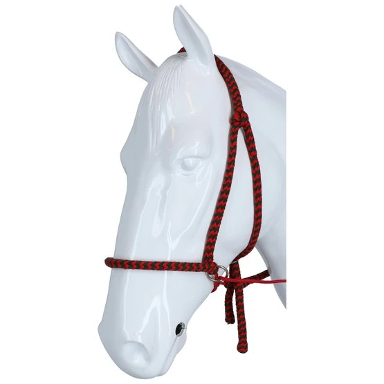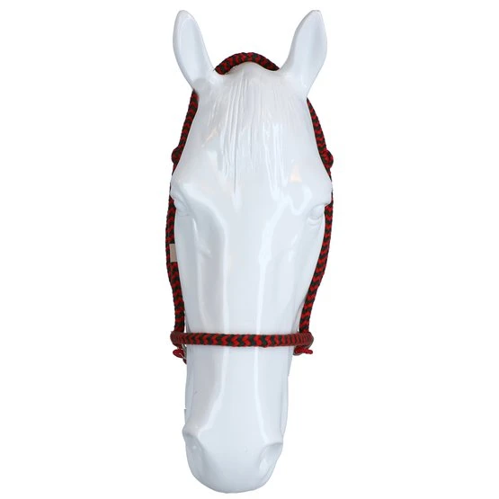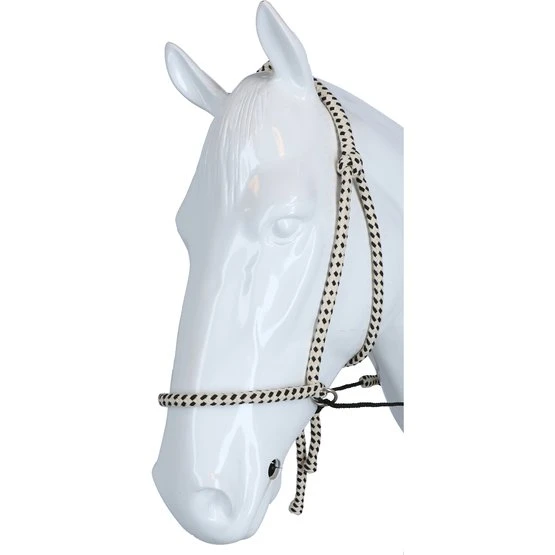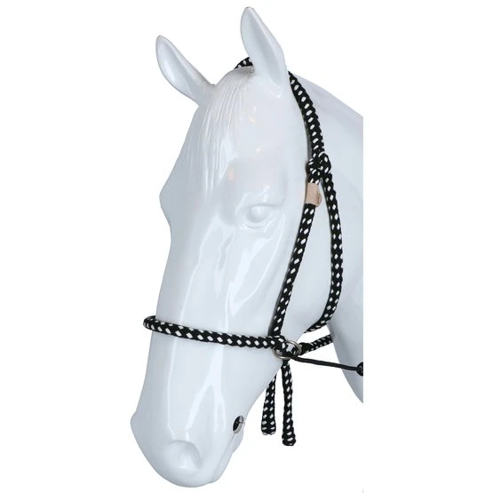 FRA Gebissloses System 4: Gebisslose Zaumzeuge sind nicht neu! Jahrhundertelang galt ein gebissloses Zaumzeug als selbstverständlich, bevor man überhaupt daran dachte, dem Pferd etwas ins Maul zu legen, legte man einfach etwas darum. Damals reichte ein Seil als Halfter und so entstand das erste gebisslose Zaumzeug. In Kombination mit Stützgewicht, Bein- und Tasthilfe hält die Reiterhand über die Zügel den Kontakt nicht mit dem Maul, sondern mit dem Kopf des Pferdes. Funktionsprinzip: Druck auf Nase und Wangen, Kinn gekreuzte Zügel. Konstruktion: Bei diesem System endet der Nasenriemen beidseitig mit einem Ring, an dem die Backenstücke und die beiden Kinnriemen im Schritt befestigt werden. Diese Riemen finden ihre Querführung durch einen Ring am Ende eines kurzen Lederstücks, das wiederum an den Ringen des Nasenriemens befestigt ist. Das Ergebnis ist, dass das kreuzweise Ganze etwas tiefer hängt als bei gekreuzten Zaumzeug (siehe System 5). Die Zügel werden an den Enden der Schrittgurte befestigt. Darüber hinaus ist dieses Zaumzeug einfach in der Ausführung aufgrund des Fehlens eines Stirnbandes, eines Kehlriemens und der Beule und Schnalle, die wir normalerweise an einem Nasenriemen finden. Auf der linken Seite befindet sich eine Schnallenverbindung in der Backe, sie ist die einzige Schnalle die benötigt wird um die Trense auf Maß zu bringen. Einmal angepasst, schieben Sie das Zaumzeug dieses Systems einfach auf den Pferdekopf und müssen danach nichts mehr befestigen. Für die FRA®-Baumwoll-Trensen aus der System 4-Serie gilt im Wesentlichen das oben Gesagte, natürlich gibt es bei dieser Trensenlinie keine Schnallenverbindungen oder sonstige lederbezogene Beschreibungen. Position: Wie bei den meisten gebisslosen Trensen erfordert auch das System 4 Trensen, dass das Nasenband auf dem harten Teil der Nase liegt, ungefähr dort, wo das Nasenbein beginnt. Die spezielle Konstruktion dieser Trensen sorgt für einen guten und festen Sitz am Pferdekopf, ohne dass etwas befestigt werden muss. Wirkung: Die Kinn-Kreuzriemen sorgen dafür, dass das Pferd beim Nachfragen nach links oder rechts Druck auf Nase und Wange auf der anderen Seite bekommt und dann der Reiterhand folgt: dreht sich durch Druck. Gleichzeitiges Anhalten an beiden Zügeln schließt das Nasenband und bietet Möglichkeiten zum Anhalten oder Tempowechsel. Die oben erwähnte Frage nach dem linken, rechten oder beiden Zügel hat aufgrund der indirekten Zügel immer eine gewisse Dosierung, die den Grad der diskriminierenden Wirkung bestimmt. Als Ergebnis wird eine gewünschte Änderung des Diskriminierungsgrades immer einen glatten Effekt haben. Natürlich werden Zügelhilfen mit anderen Stützhilfen unterstützt. Der Verbindungsriemen, der die Zügelführung mit dem Nasenriemen und dem Backenstück verbindet, sorgt für eine tiefe Position und freien Durchgang der gekreuzten Kinnschrittriemen, was die Auslösung stark verbessert. Besondere Aufmerksamkeit muss bei dieser Art von Zaumzeug immer der Pflege der gekreuzten Kinnriemen geschenkt werden, die richtige Pflege gibt dem Leder die Flexibilität, die richtige Freigabe in den Ringen dauerhaft zu erfahren. Das Zaumzeug eignet sich nicht zum Longieren mit dem Einzellonge und daher nicht zum Longieren von Pessoa. Zum Longieren auf den Doppelleinen nehmen Sie die Zügel ab und verwenden Sie die gelösten Ringe, um die langen Leinen zu befestigen. Eignung: Das Zaumzeug wird in Kombination mit leichtem Zügelkontakt verwendet und ist sehr gut für sensible Pferde geeignet. Dadurch eignet sich das Zaumzeug auch besonders für junge zu reitende Pferde und sensible Tiere mit Bluthochdruck In dieser Kategorie kann das Zaumzeug auch als Fahrzaum verwendet werden. Neben der Tatsache, dass das Zaumzeug als Führhalfter verwendet werden kann, bietet es auch volle Mundfreiheit, was bei Outdoor-Ausritten seinen Vorteil bieten kann.