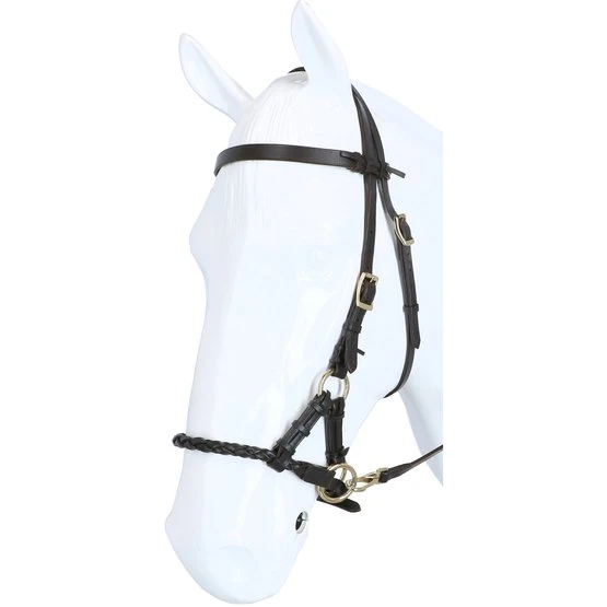 Seilknotenhalfter: Generell gilt der unter Sidepull beschriebene Effekt auch für die Seilknotenhalfter. Es kann festgestellt werden, dass die tiefe, mittige Anbringung der Zügel die diskriminierende Wirkung der gegebenen Hilfen stark begünstigt. Knopfhalfter sind nicht für Longenarbeit geeignet. (verfügbare Modelle FRA Babia, FRA® pablo und FRA® capal)