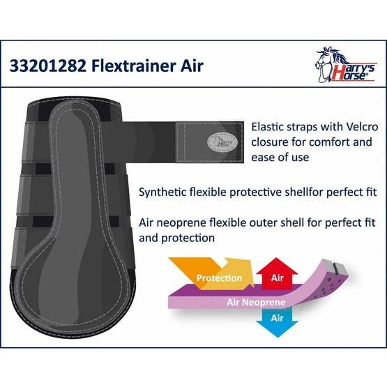 Diese Gamaschen besitzen starke, elastische Klettverschlüsse. Eine extra Ventilation durch “Air” Neopren wird innen in Kombination mit zusätzlichen Lüftungsöffnungen auf der Außenseite gewährleistet. Durch die optimale Passform hat das Pferd viel Bewegungsfreiheit. Die Gamaschen können in der Waschmaschine gewaschen werden (30°C).