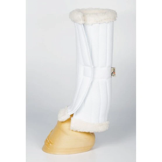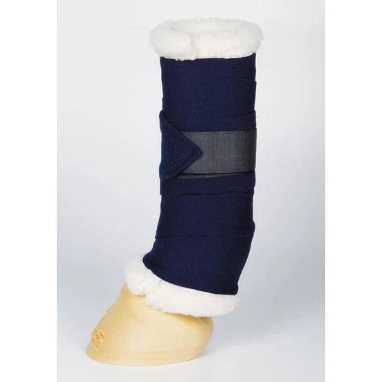 Atmungsaktiv unter Verband. Da die Kante aus Kunstfell besteht, sieht das Ganze schick aus, ohne dass zusätzliche Wärme entsteht. Die untere Bandage kann mit Klettband gesichert werden, damit sie beim Verbinden nicht verrutscht.