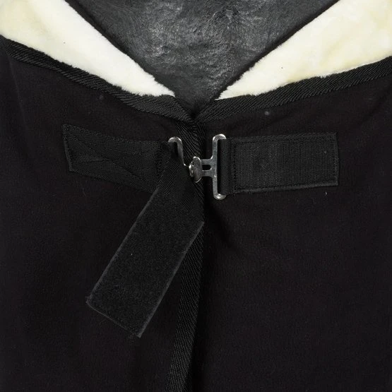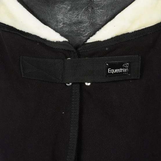 Luxuriöse Fleecedecke mit extra breitem Webpelzkragen. Diese Decke verfügt über einen verstellbaren Einzelschnallenverschluss vorne, gekreuzte Bauchgurte und eine abnehmbare Schweifkordel.