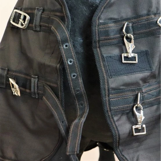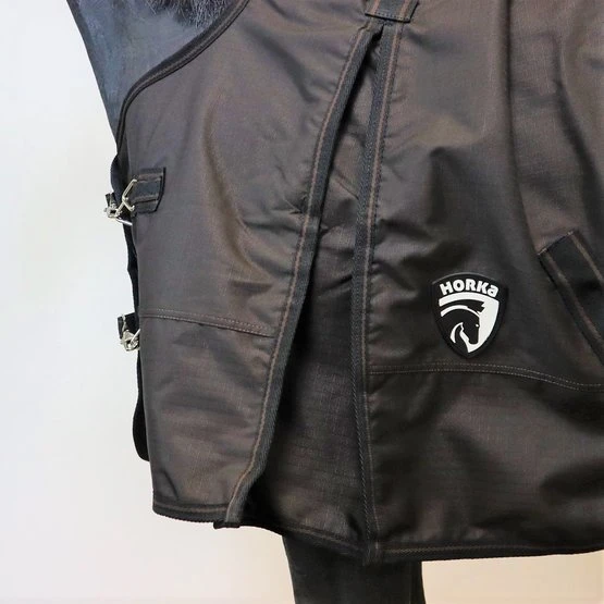 Der Außen Teppich Horka hohe Hals und 0g ist an der Außenseite 600D Ripstop – Polyester. Die Decke ist wasserdicht und atmungsaktiv 3000mm bis 3000mvp. Das Innenfutter besteht aus Polyester. Die Decke ist mit einem Doppelclipverschluss auf der Brust mit Schnallen und Karabiner, Kreuz Gurtband unter dem Bauch mit Gummianschlägen, abnehmbaren bilriemen und einer großen Heckklappe. Darüber hinaus hat der Teppich einen hohen Hals und extra lang und breit Zwickel für eine bessere Mobilität.