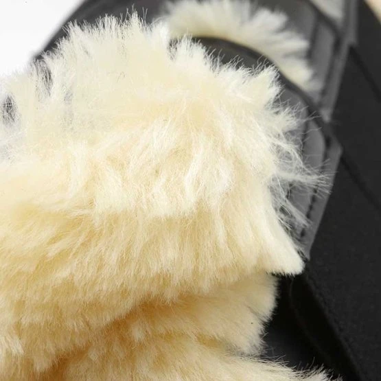 Robuste Gamasche mit Teddyfell-Innenseite und Kunstleder außen. 3 Klettverschlüsse mit Elast sorgen für einen optimalen Halt. Gleiches Modell für vorne und hinten, hinten eine Nummer größer nehmen.