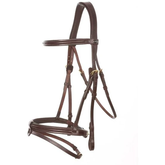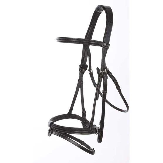 – mit engl.-komb. Reithalfter, beidseitig verstellbar- gerades Leder-Stirnband – mit Zaumhaken an den Gebissverschnallungen- mit gummierten Zügeln mit Stegen- Nasenriemen weich unterlegt- Genickstück im Ohrenbereich ausgespart und gepolstert – abnehmbarer SperrriemenGröße: V, WFarbe: schwarz, braun, cognacBeschläge: schwarz: silber, braun und cognac: messingArt.-Nr.: 190 68