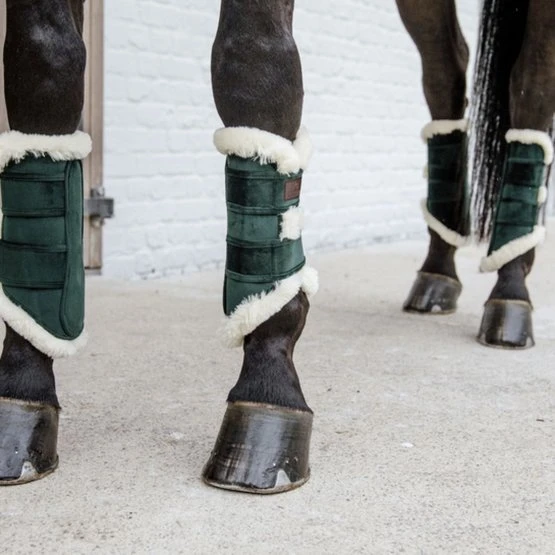Außen sind die Putzstiefel aus unserem bekannten Samtstoff gefertigt. Auf der Innenseite haben sie unser luxuriöses künstliches Schaffell, das Komfort und Dämpfung bietet. Die Putzstiefel werden im 2er-Set verkauft. Sie passen perfekt zu unseren Velvet Contrast Schabracken. Die Putzstiefel sind perfekt für das tägliche Training und Spaziergänge in der Hand. Anatomisch geformt mit zwei sicheren elastischen Klettverschlüssen bieten diese Stiefel Atmungsaktivität und ein pflegeleichtes Etikett (maschinenwaschbar bei 30°, kein Trockner).