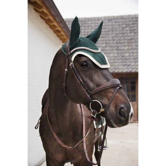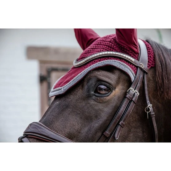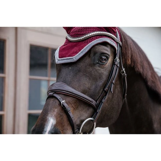 Fly Veil Velvet Contrast schützt die Ohren des Pferdes beim Reiten vor Fliegen