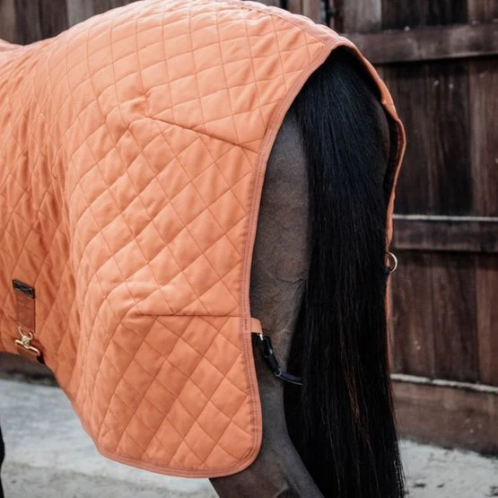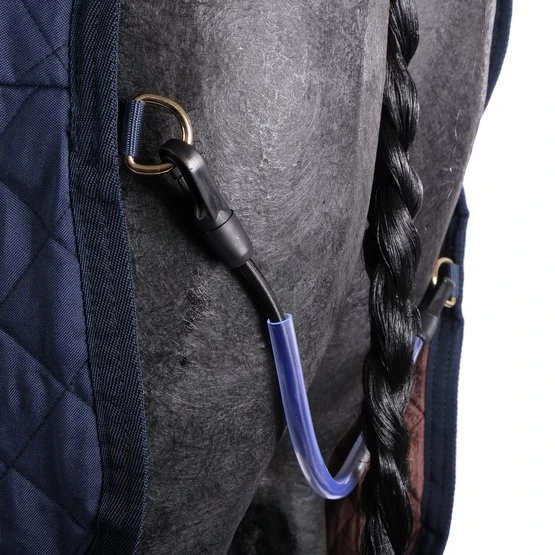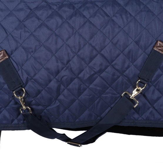 Unsere Turnierdecke mit einer Füllmenge von 160g verfügt über ein Futter aus künstlichem Kaninchen-Fell, das extrem weich ist und somit Scheuern wie auch Pferdehaare im Futter verhindert. Das künstliche Kaninchen-Fell schafft auch winzige Luftbläschen, die die Körperwärme einfangen und erhalten.Dank der weichen Haare des künstlichen Kaninchenfells glänzt das Fell der Pferde stärker. Wegen des exzellenten Wärme/Gewicht-Verhältnisses bietet die Stalldecke einenhervorragenden Tragekomfort. Das künstliche Schaffell deckt den ganzen Hals-und Brustbereich ab und bietet optimalen Komfort in Kombination mit einem äußerst modischen Look. Da der äußere Stoff mit einem Diamant-gesteppten Muster versehen ist, wird es auch sehr schwierig für das Pferd, in den Stoff zu beißen und die Decke zu zerreißen. Gleichzeitig verhindern Stoff und Muster auch, dass Späne an der Decke hängen bleiben. Die Stalldecke verfügt über einen doppelten Verschluss vorne und zwei abnehmbare Bauchgurte, die mit Kunstleder verstärkt sind. Die Bungee-Schweifkordel ist ebenfalls abnehmbar und hat eine Plastikabdeckung, die eine einfache Reinigung ermöglicht. Die Turnierdecke ist maschinenwaschbar bei 30°C, keine Trockner.