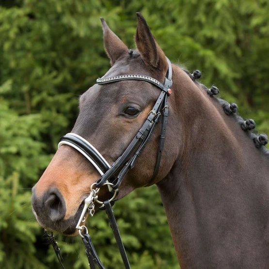 Genickstück schwarz unterlegt, Nasenband weiß unterlegt