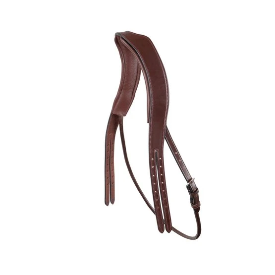 Montar Kopfstück mit einem rundgenähten Lederkehlriemen und runder Schnalle. Das offene Kopfstück passt sich der individuellen Kopfform jedes Pferdes an. Durch den V-Spalt und die weiche Polsterung an den Seiten wird der Nacken des Pferdes geschont. Das Pferd kann sich frei bewegen und sich entspannt auf die Anweisungen des Reiters konzentrieren. Es gibt unendlich viele Möglichkeiten mit Montar Trensen Zubehör!