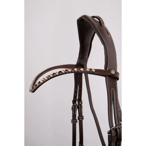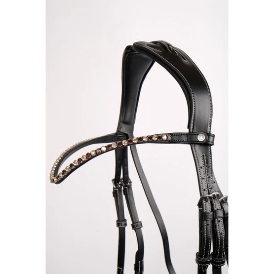 Alle Montar-Stirnbänder können dank eines Montar-Druckknopfs auf jeder Seite leicht gewechselt werden, auch wenn die Trense in Gebrauch ist.