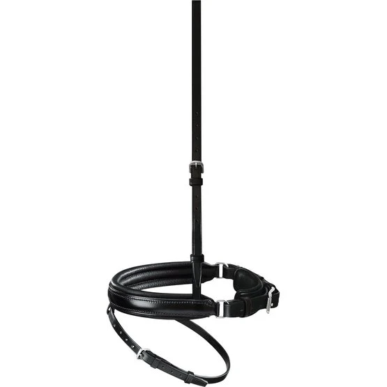 Das Reithalfter Spezial mit Sperrriemen hat einen doublierten, weich unterlegten Nasenriemen. Die Verschnallung ist mit einem weichen Kinnpolster ausgestattet, um den Druck am empfindlichen Unterkiefer optimal zu verteilen.