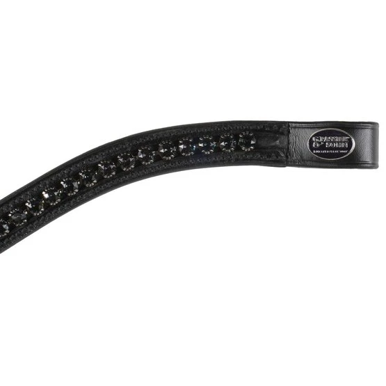 Elegant geschwungenes Stirnband mit großen, edlen Premium Crystals in den Farben Grey, Graphite, Roségold oder Clear Crystal mit Ledereinfassung und original Passier Logo auf der linken Schlaufe.