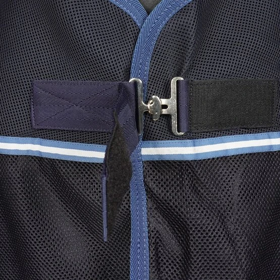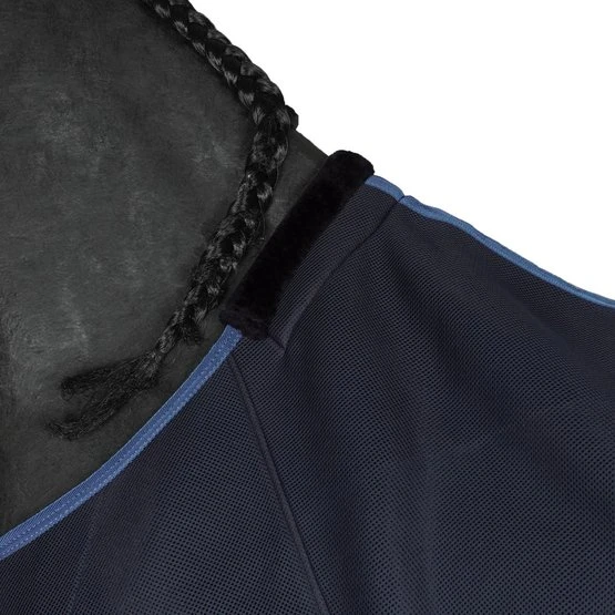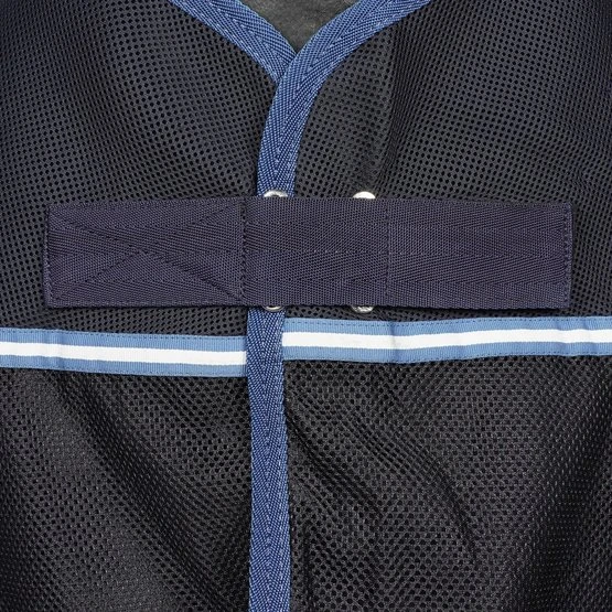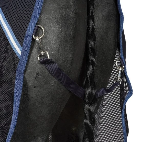 Flauschiges Kunstfell oben am Halsausschnitt. Innen gefüttert. Kreuzbegurtung aus Gurtband, abnehmbar, auf der rechten Seite befestigt, silberne Metallschnallen auf der linken Seite. Gesticktes PS-Logo auf beiden Seiten des Teppichs.