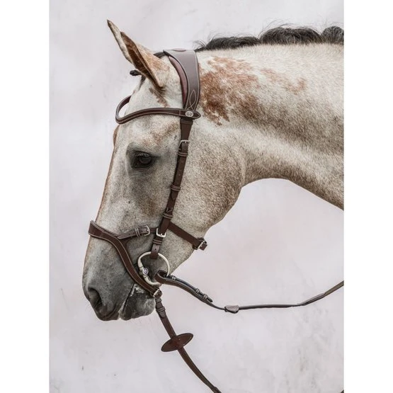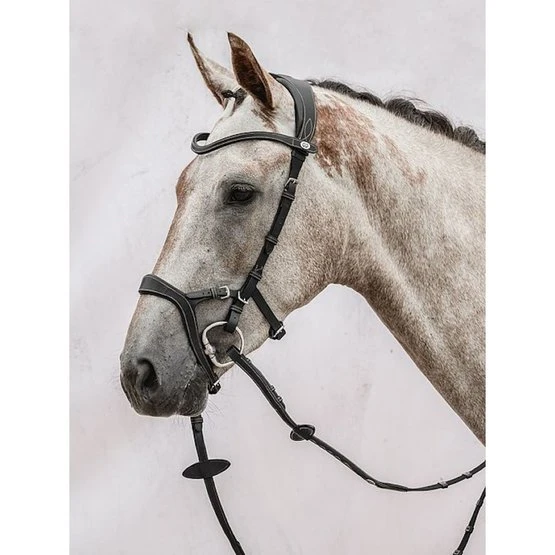 Der verstellbare Nasenriemen gibt dem Reiter die Möglichkeit zu wählen, wie viel Druck auf die Nase ausgeübt werden soll. Es hilft dem Pferd, das Gebiss zu akzeptieren und ist ein perfektes Zaumzeug sowohl für das junge Pferd, das noch lernt, mit dem Reiter zu kommunizieren, als auch für den Pferdetyp, der versucht, den Kontakt mit der Hand des Reiters zu vermeiden und auch lieber im Genick einknickt viel.