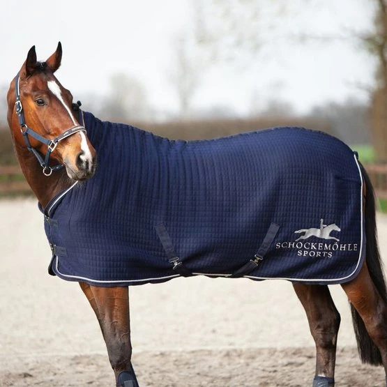 Die Heat Balance Rug von Schockemöhle Sports ist wärmeregulierend – so bleibt das Pferd auch an kühleren Tagen nach einem schweißtreibenden Training warm und trocken. Abnehmbare Kreuzgurte und eine Schweifkordel sorgen dafür, dass die Abschwitzdecke nicht verrutschen kann. Eine schicke Logo-Stickerei und die dekorative Einfassung mit zwei Kordeln verleihen der Decke ihren sportlich-eleganten Look.