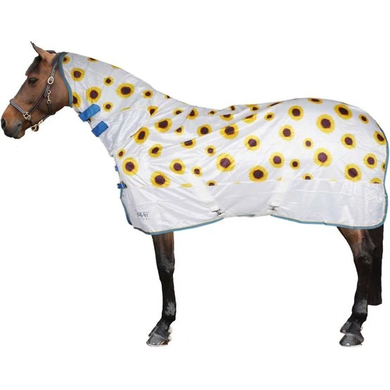 Die Tempest Original Fliegendecke mit Sonnenblumenmuster besteht aus einem eng gestrickten Netzgewebe, das eine Barriere gegen beißende Insekten darstellt und gleichzeitig leicht und luftig bleibt, damit sich das Pferd bei wärmerem Wetter wohlfühlt. Das atmungsaktive Material schützt das Pferd vor Überhitzung und reduziert das Risiko von Sonnenbrand und Sonnenbleiche. Weitere Eigenschaften: 80 % UV-Blockierung*. Ultra-atmungsaktiv. Anti-Sonnenbleiche. Leicht & luftig. Brustgurte mit Schnalle. Verstellbarer Schweifriemen.* Die Wirksamkeit kann mit der Zeit nachlassen. Test durchgeführt gemäß BS EN 13758-1:2002+A1:2006.