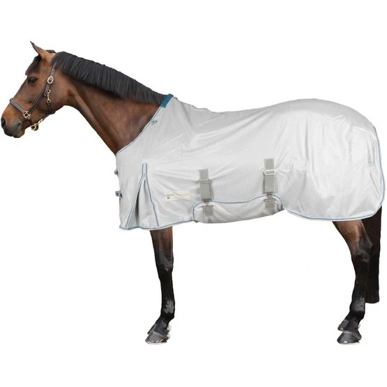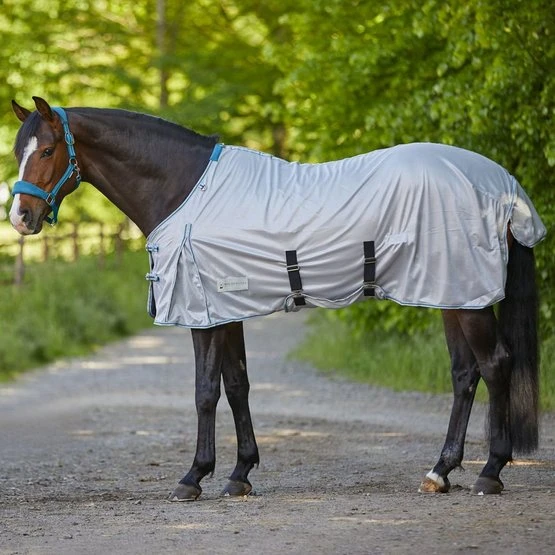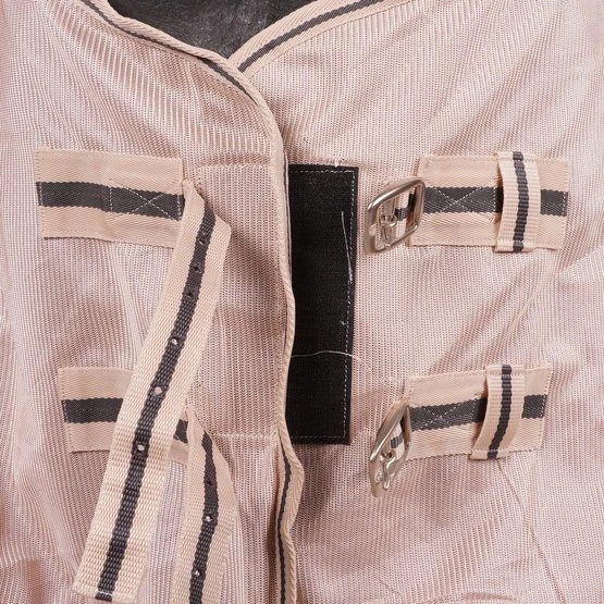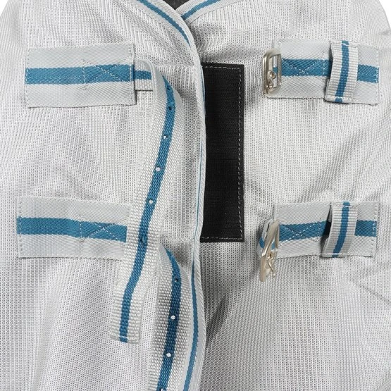 Hochwertige Fliegendecke aus feinmaschigem Gewebe mit Bauch- und Schweiflatz zum Schutz vor lästigen Insekten. Doppelter Frontverschluss, Gehfalte, Schweifkordel und Beinschnüre sorgen für einen guten Sitz. Zum Schutz von Hals und Mähne empfehlen wir die Kombination mit dem passenden Halsteil 44978527.